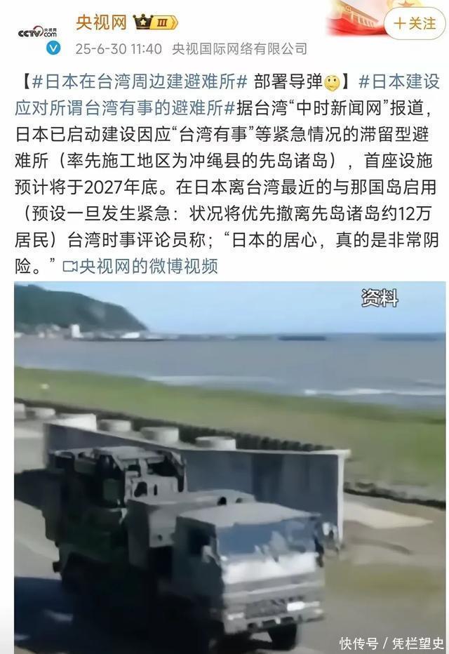 最近,东亚局势又泛起一层“不安分”的涟漪!央视报道,日本竟然以“应对台湾有事”为由,在靠近台湾的冲绳县先岛诸岛动工建设滞留型避难所,预计2027年底建成。台湾时事评论员赖岳谦直言:日本这招,可太“阴”了!这看似给当地居民准备的“安全屋”,背后却藏着复杂的军事盘算。 咱们不妨想想,如果只是为了日常防灾,为何偏偏选在敏感的台海周边建避难所?先岛诸岛的与那国岛距离台湾花莲仅110公里,日本计划紧急时刻将当地12万居民撤到这里,同时还在岛上部署了防空导弹和岸舰导弹系统。这就好比邻居在你家院墙外,一边建“临时住所”,一边摆上“武器库”,任谁看了都觉得不对劲。       日本政客此前喊出“台湾有事就是日本有事”,起初不少人以为只是“打嘴炮”。但现在看来,这些话可不是随便说说这么简单!回顾历史,2021年日本防卫白皮书首次将台湾局势写入其中;2023年,日本与美国多次在台海周边举行联合军事演习,模拟所谓“紧急事态”应对。如今建设避难所、部署导弹系统,更像是一套“组合拳”,把干涉台海从口头表态变成实际行动。